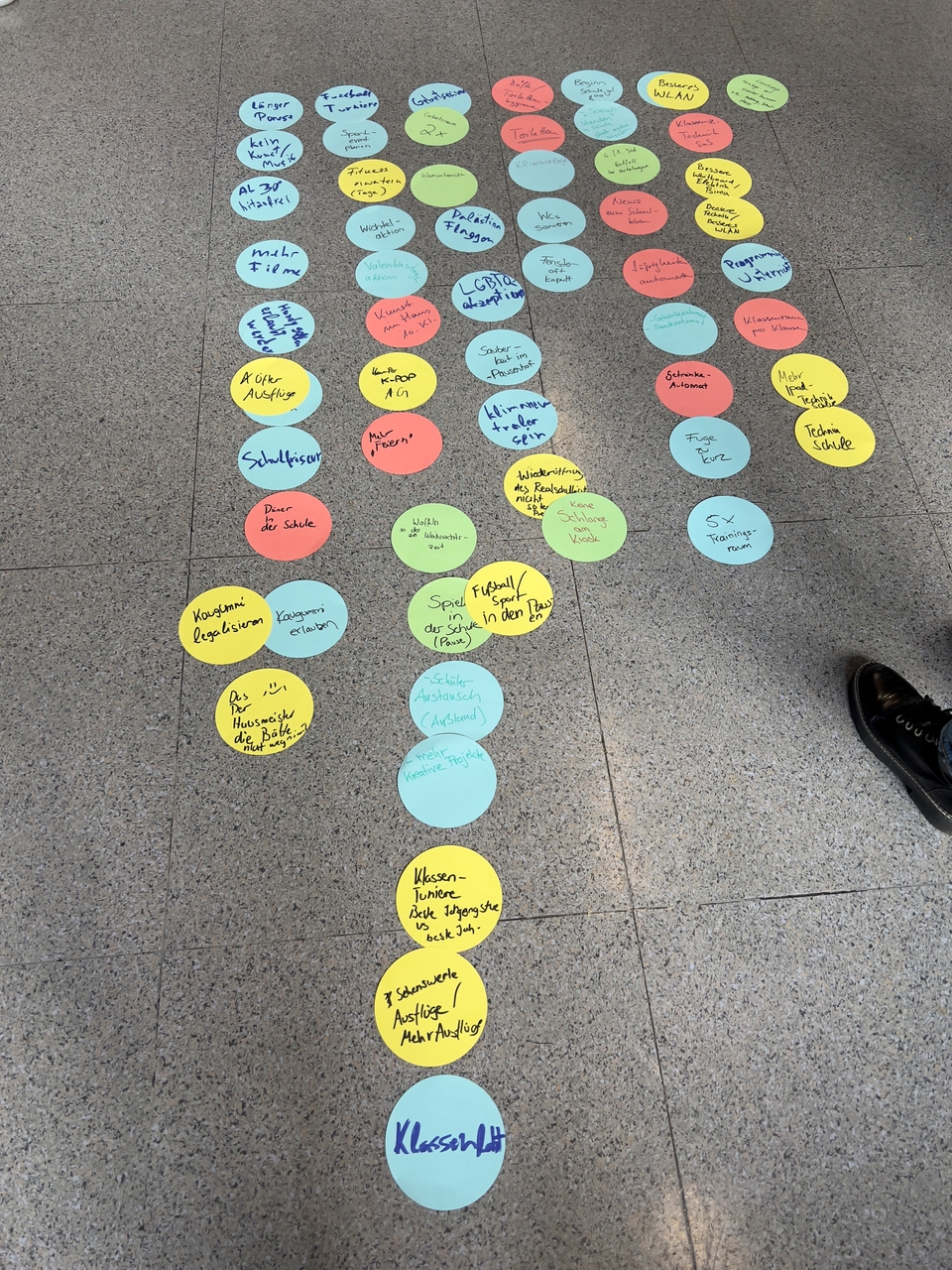 Im November fand ein großes SMV-Treffen mit den Klassensprecherinnen und Klassensprechern aller Klassen, der Schülersprecherin und den Schülersprechern sowie den Vertrauenslehrerinnen und dem Vertrauenslehrer statt. Bei diesem Treffen ging es darum, eine starke Gemeinschaft zu bilden und zukünftige Projekte zu planen. Nach ein paar Aufwärm- und Kennenlernspielen fingen wir an, Ideen zu sammeln, was die Jugendlichen in diesem Jahr alles erreichen wollen. Hier wurde jeder Vorschlag angenommen, um eine positive Arbeitsatmosphäre zu gestalten. Gebetsräume, Hygiene- und Verbesserungsvorschläge, aber auch Aktionen wie am Valentinstag und im Fasching wurde hier besprochen. Danach haben wir die Schülerinnen und Schüler in Gruppen aufgeteilt, um sie an ihrem Wunschprojekt arbeiten zu lassen und am Ende ein Plakat zu wie sie planen, diese umzusetzen. Die Lehrkräfte sind währenddessen herumgegangen, um uns zu helfen und schon im Vorfeld ein paar Fragen zu beantworten. Zum Schluss hatten wir noch das Vergnügen bzw. die Ehre, dass unsere Schulleiterin Frau Edenhofer und unser Konrektor Herr Schwarzer vorbeigeschaut haben. Den beiden und auch den anderen Lehrkräften durften wir dann stolz unsere Ideen präsentieren und haben gutes Feedback bekommen, wie und ob man die Projekte umsetzen kann und was eher schwierig wird, aber trotzdem noch zu schaffen ist.