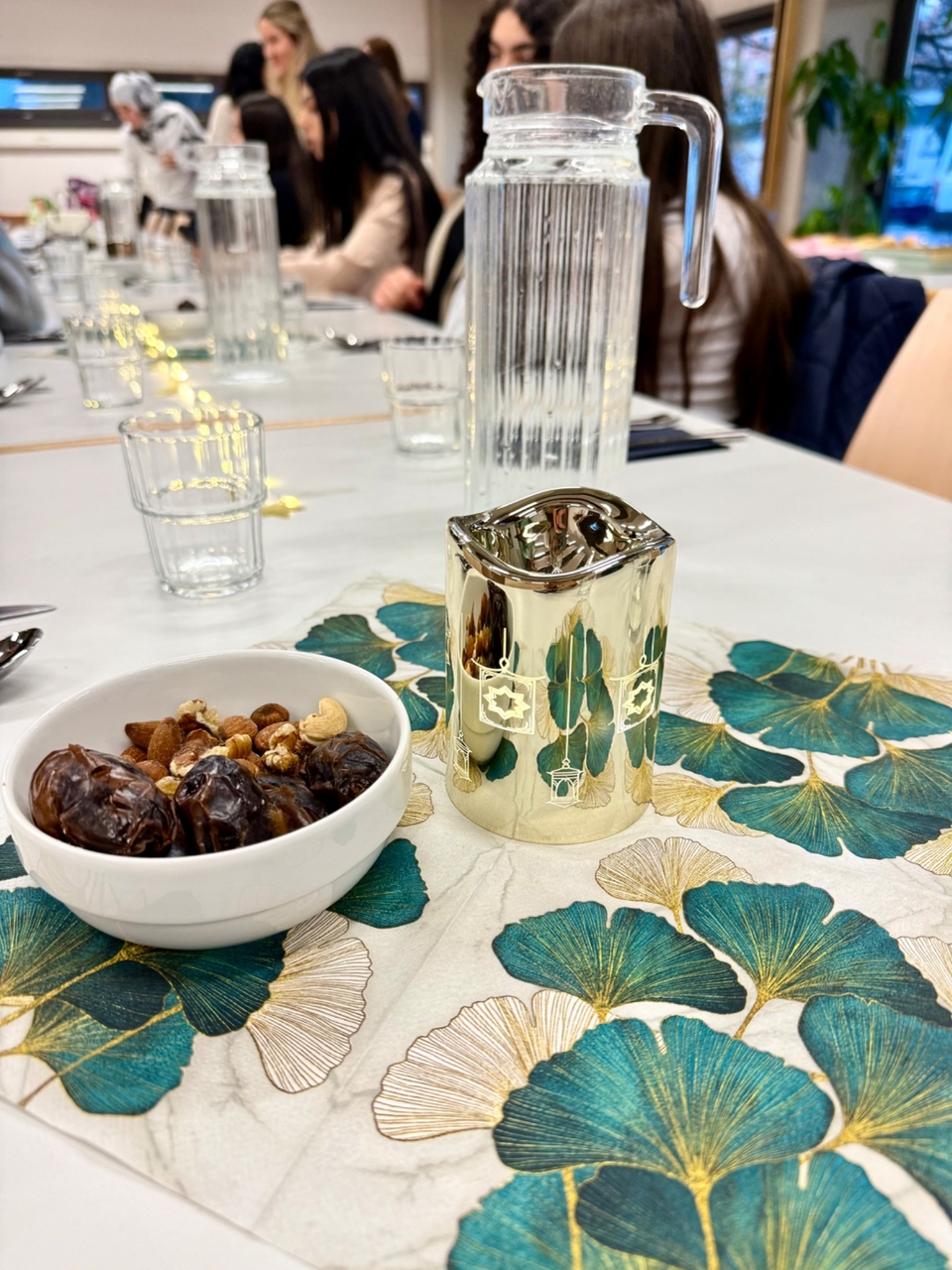 Am 9. März fand an unserer Schule ein besonderes Ereignis statt: Schülerinnen und Schüler kamen zu einem gemeinsamen Iftar-Essen zusammen. Das Iftar ist das abendliche Fastenbrechen während des Ramadan und bot eine schöne Gelegenheit, miteinander Zeit zu verbringen und sich auszutauschen. Besonders erfreulich war, dass Schülerinnen und Schüler ganz unterschiedlicher Religionen, Kulturen und Konfessionen an diesem Abend teilnahmen.