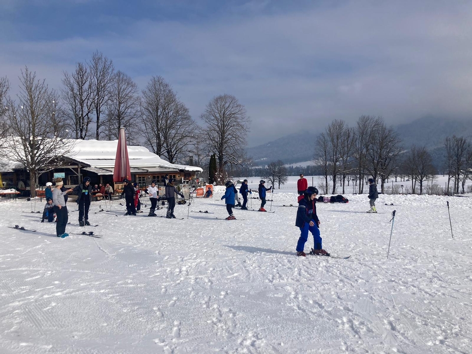 Zum Glück hatte es am Wochenende davor ordentlich geschneit und so lagen beste Bedingungen für die Bewegung an der frischen Luft vor. Bei Kaiserwetter wurde entweder an der Isar entlanggewandert, um dann anschließend auf dem „Milchhäusl“ den Ausblick zu genießen, oder erste Erfahrungen auf den Skiern gesammelt. Mittags trafen sich alle Gruppen wieder zum gemeinsamen Essen auf der Hütte und jeder konnte aufgeregt von den Erlebnissen erzählen. Anschließend ging es für die Skifahrer und -fahrerinnen nochmal zum Üben auf die Piste, während die Wandergruppen sich im Schnee austobten.