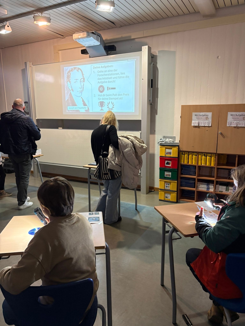 Ein Highlight für die jüngsten Besucher war die „Stempeljagd“: An 21 Stationen konnten die Grundschulkinder Aufgaben lösen, Stempel sammeln und schließlich an der Zielstation mehr über den Namenspatron Joseph von Fraunhofer erfahren. Die Freude über die gefüllten Stempelkarten war groß – ebenso wie der Stolz über die gemeisterten Herausforderungen.